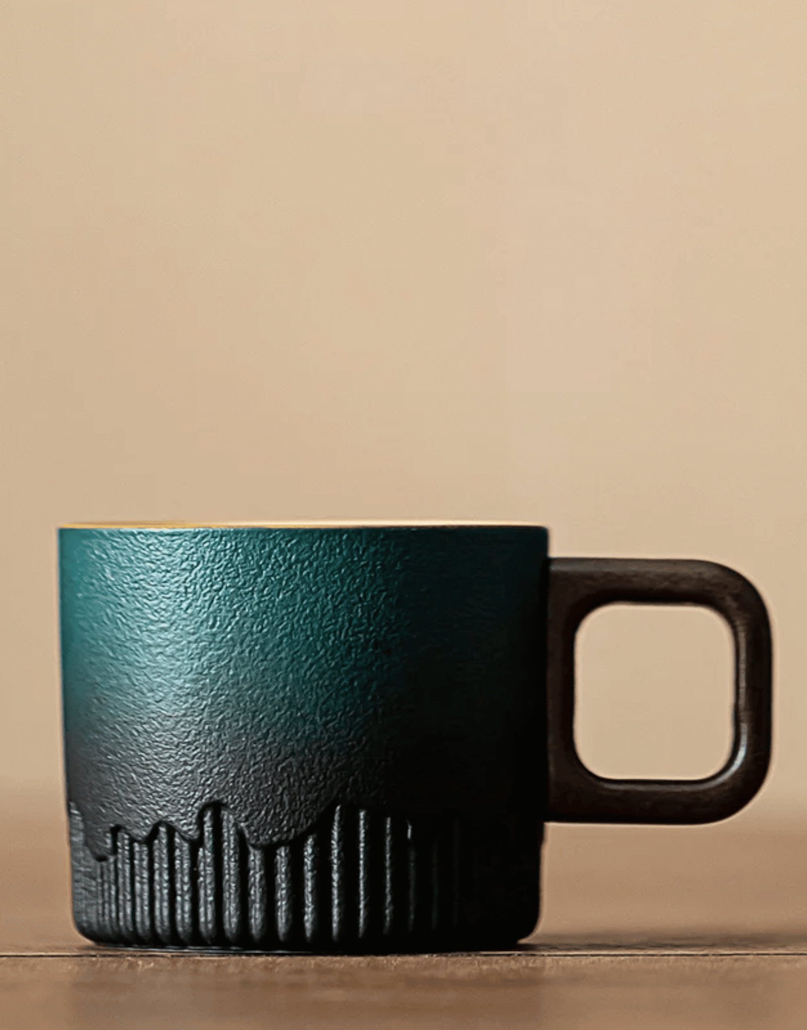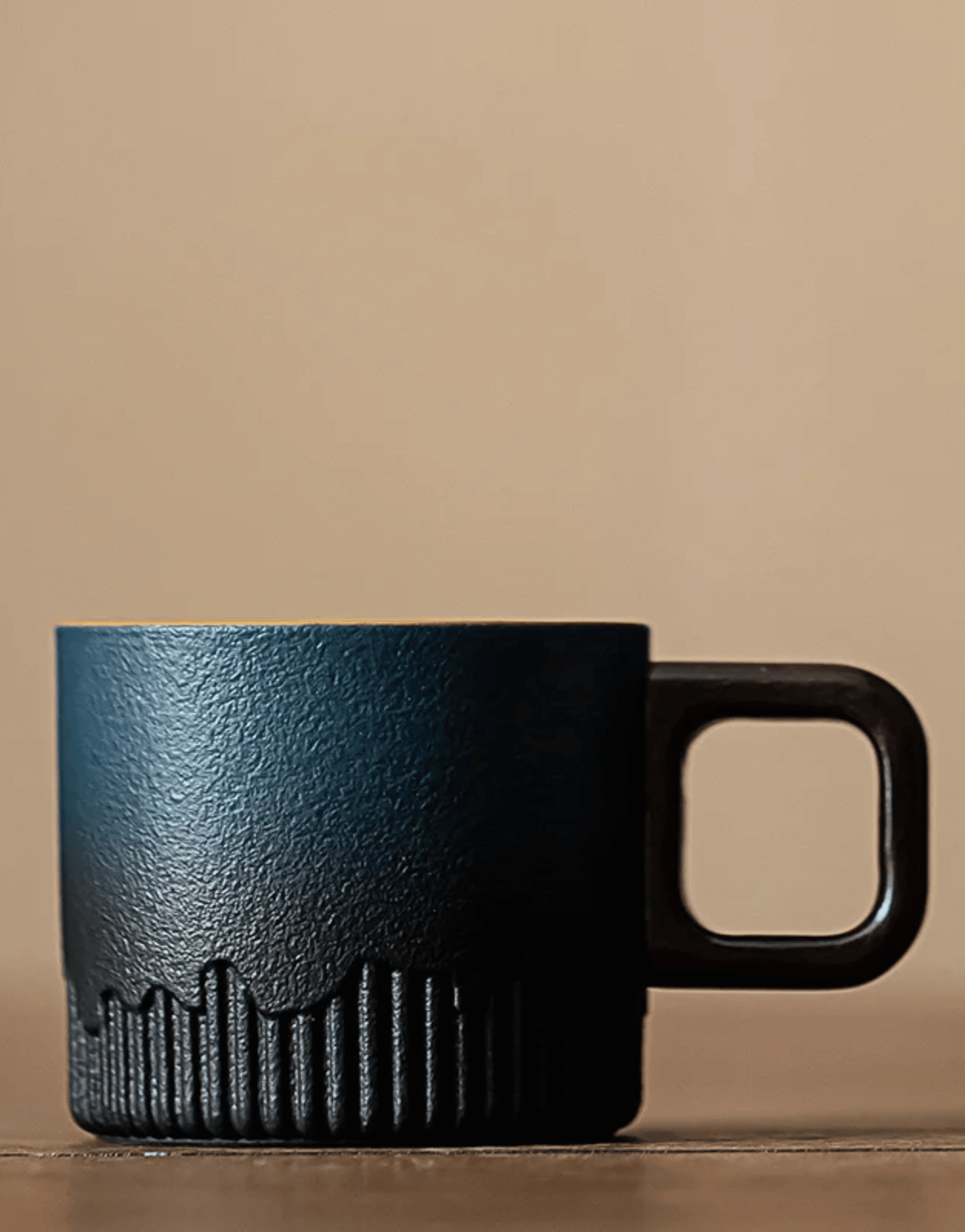Reactive Glaze: Fired at 1300°C, the metallic mineral glaze reacts differently on every cup. No two pieces are exactly alike. You own a unique work of art.