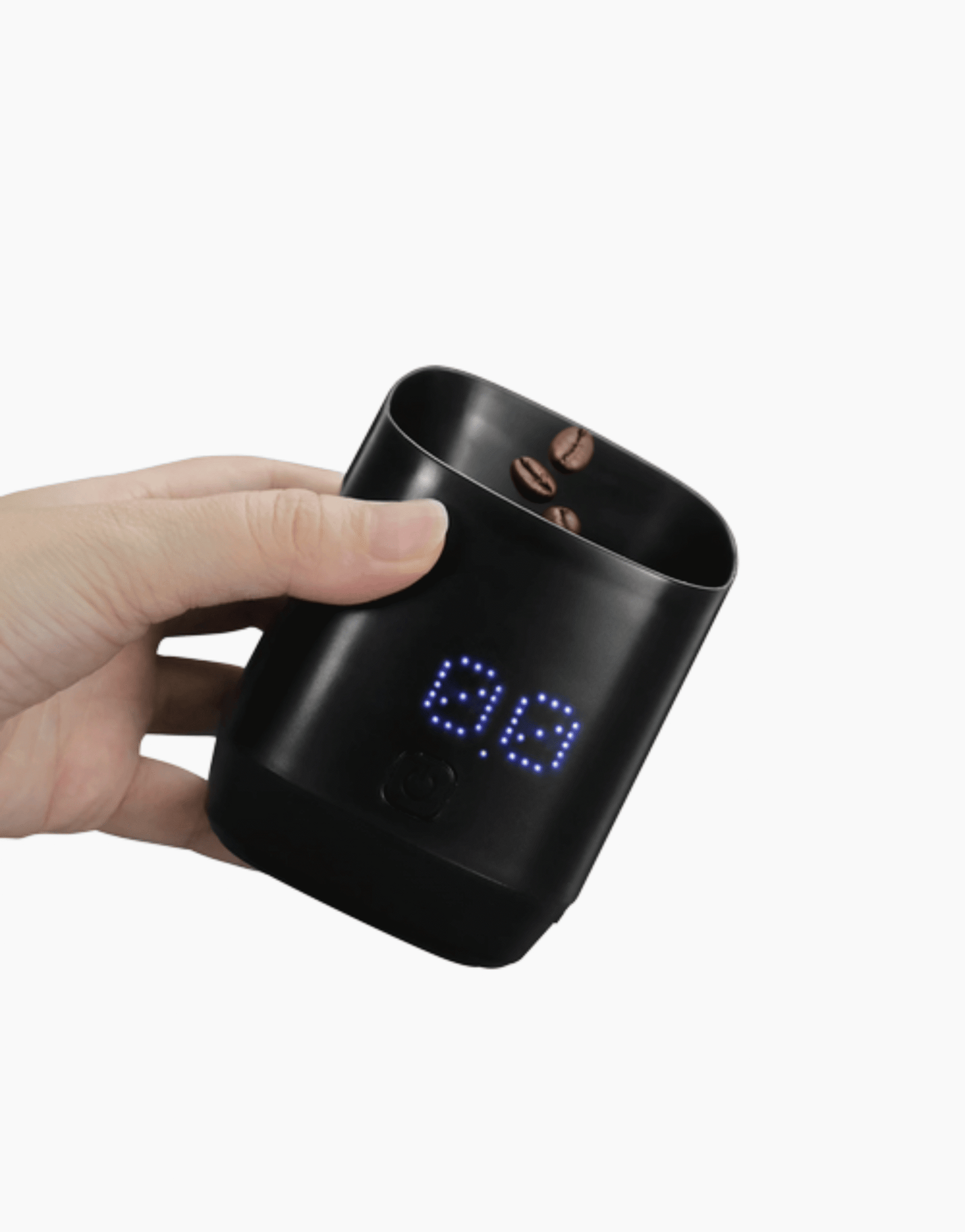 Simplify your workflow with the ultimate tool for single-dosing. The Smart Dosing Cup eliminates the need for a bulky countertop scale. By integrating high-precision sensors directly into the vessel, it allows you to weigh your dose, pour it into the grinder, and catch the grounds—all with one device.